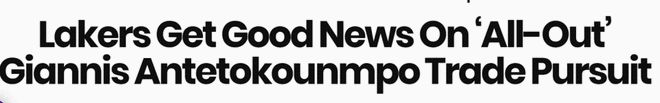 北京時間3月12日,據The Athletic記者薩姆-阿米克報道,湖人計劃在休賽期全力追求字母哥。“以洛杉磯湖人為例,他們已明確計劃在夏天全力追求這位雄鹿球星。即便最終沒能得到他,這種公開化的追求壓力,通常也會向其他追求者發出信號:想要得到字母哥,就必須準備好重磅報價。”