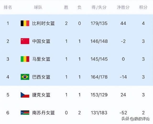 本場比賽過後,中國女籃,目前1勝1負淨勝分-2分,小組積3分,排在A組第2位。