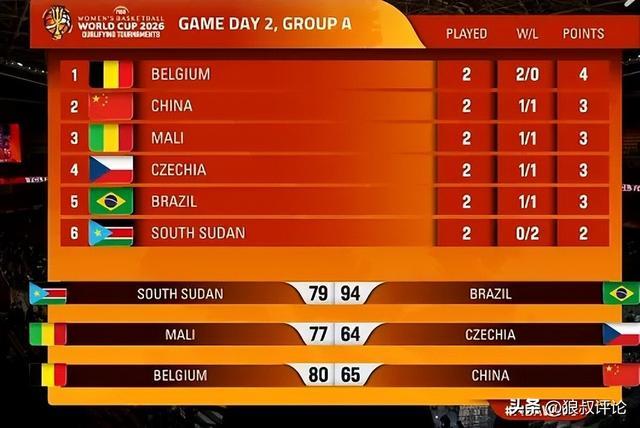 北京時間3月12日,女籃世預賽,中國女籃65-80不敵比利時女籃,戰績為1勝1負。