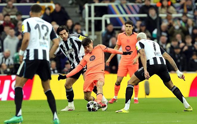 加盟球隊之後,迅速憑借穩定發揮,征服巴薩球迷的門將霍安加西亞,這一場一上來就連續出現撲救脫手的情況,好在都沒有造成丟球的後果,盡管狂攻不止的紐卡,下半場由喬林頓取得進球,但越位在先被取消,但巴薩孱弱的後防,沒有頂住喜鵲軍團一波接一波的進攻,第87分鍾墨菲右路下底傳中,無人盯防的巴恩斯輕鬆推射建功,幫助紐卡取得了1-0的領先,但傷停補時階段亞馬爾點射絕平救主,幫助巴薩1-1全身而退。