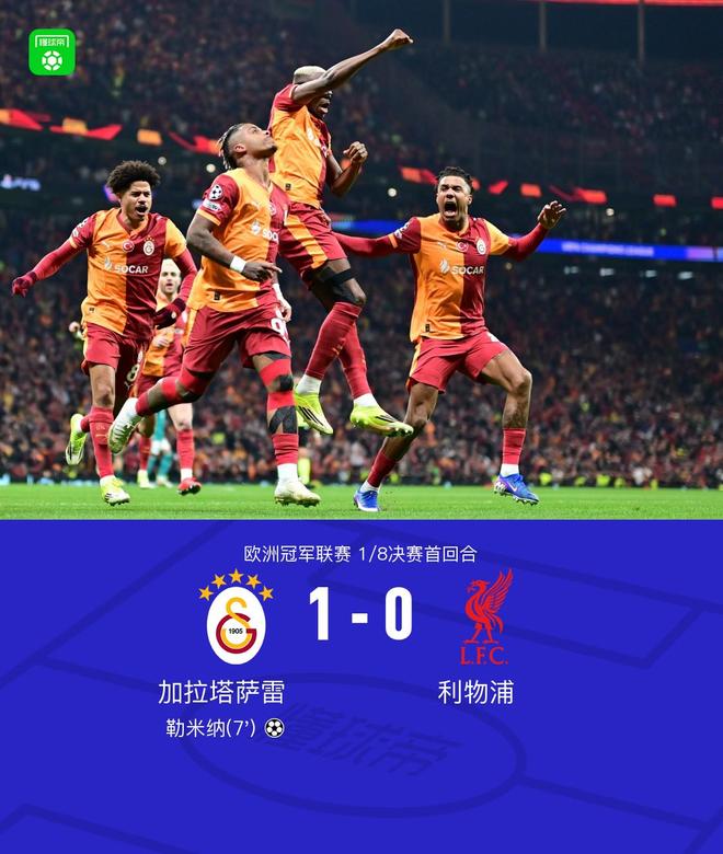 北京時間3月11日歐洲冠軍聯賽 1/8決賽首回合,加拉塔薩雷對陣利物浦。加拉塔薩雷勒米納破門。最終比分加拉塔薩雷 1-0 利物浦。